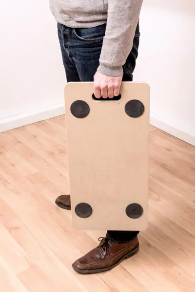 Priročen voziček za transport s platformo iz MDF plošče, 4 protizdrsnimi blazinicami za boljši oprijem bremena, zložljivimi kolesci iz polipropilena in praktičnim ročajem za prenašanje.