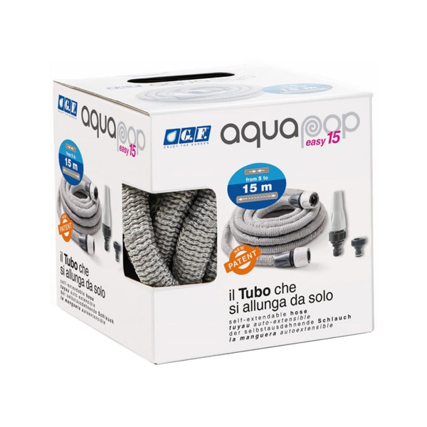 Gibljiva in samoraztegljiva zalivalna cev z zgornjo plastjo iz tkane mreže. Praktična, lahka in enostavna za uporabo, zahvaljujoč cevi, ki se s pritiskom vode sama raztegne do 15 m. Idealna za zalivanje rastlin na manjših vrtovih, terasah ali balkonih.