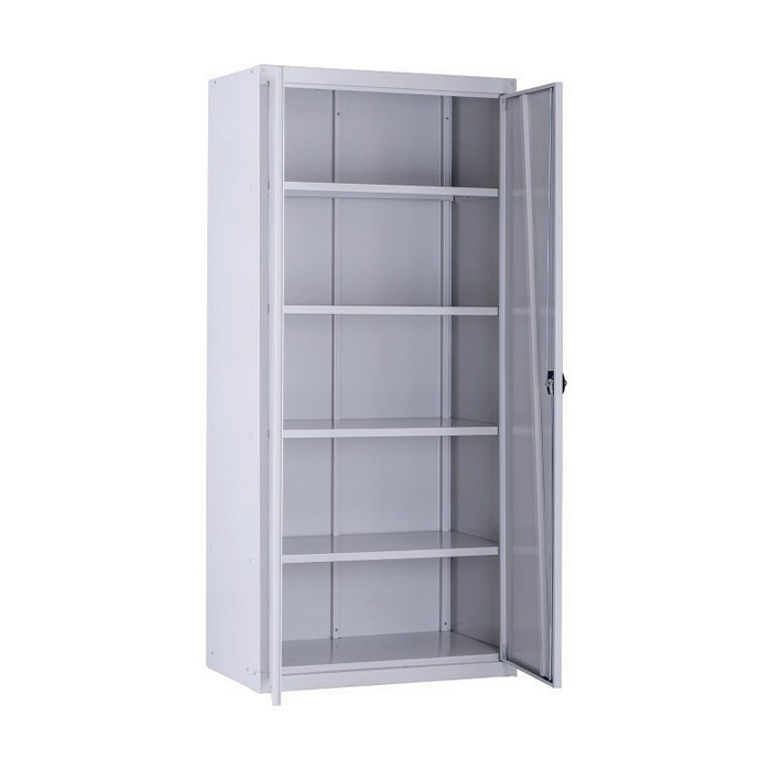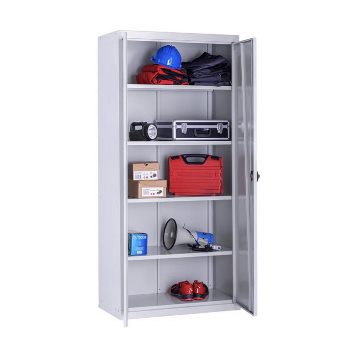 Kovinska delavniška omara z dvoje vrati, ki so ojačana s prečnimi profili, ključavnico za zaklepanje, ter petimi pločevinastimi policami za shranjevanje. Stabilna jeklena konstrukcija, s prašno lakiranim zaključkom. Idealna za delavnico, garažo, skladišče, klet, pokrit balkon in podobno.