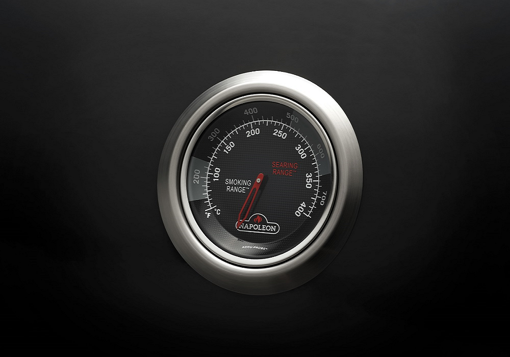 Za enakomerno temperaturo skrbijo trije visokokakovostni glavni gorilniki iz nerjavečega jekla, ki jih lahko ločeno prižgete s sistemom JET-FIRE™. Pokrov žara je opremljen z integriranim ACCU-PROBE™ termometrom, ki omogoča natančen nadzor temperature. Površina za peko vključuje WAVE™ rešetke iz litega železa, ki zagotavljajo optimalen stik s hrano in enakomerno pečenje.
