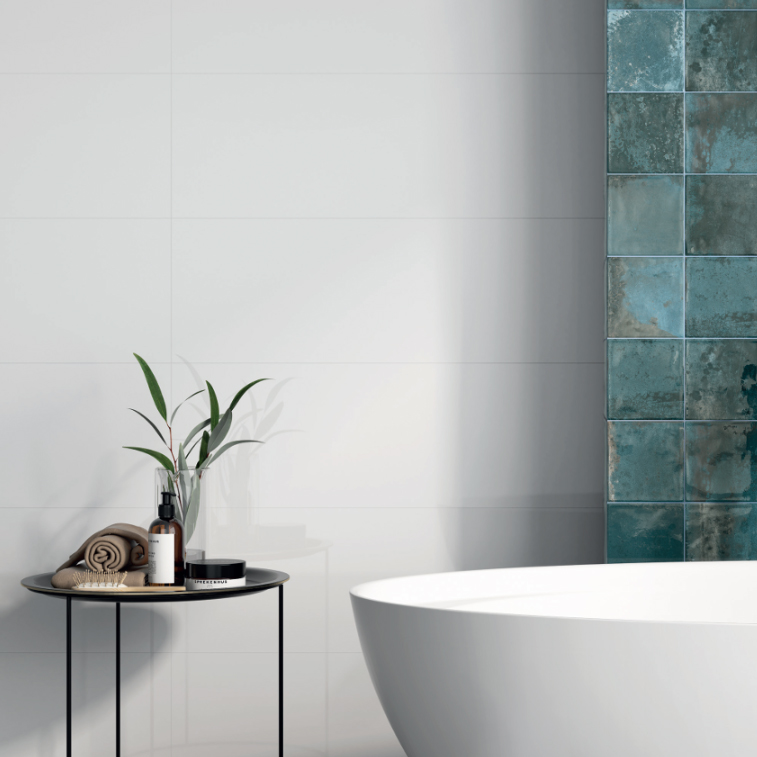 Zaradi sijajne površine in svetlega tona je ploščica idealna za vizualno povečanje prostora.