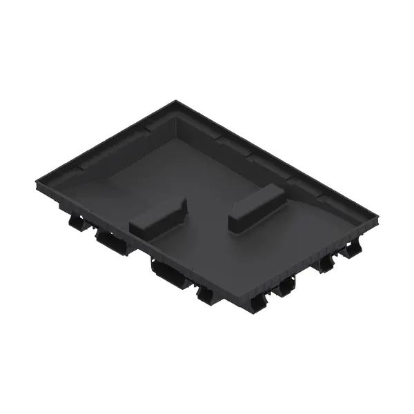 Drenažni predpražnik s pocinkano jekleno rešetko in plastično kadjo z možnostjo stranskega ali talnega odvajanja vode v tla oz. kanalizacijsko omrežje. Komplet je namenjen za vgradnjo v estrih ali beton na vhodih v različne objekte, kot so hiše, bloki, poslovne zgradbe in podobno. Predstavlja trajno in učinkovito rešitev za ohranjanje čistoče prostorov, hkrati pa je zaradi odstranljive rešetke enostaven za vzdrževanje. Odtočne luknje so v kadi predhodno izoblikovane in jih je potrebno izvrtati.